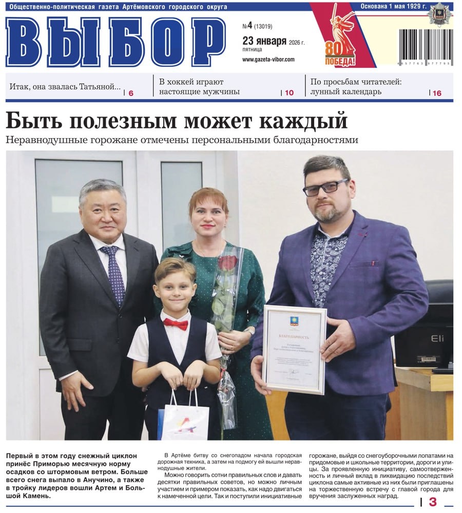 📰 Свежий номер газеты «Выбор» от 23 января уже в киосках и магазинах Артёма