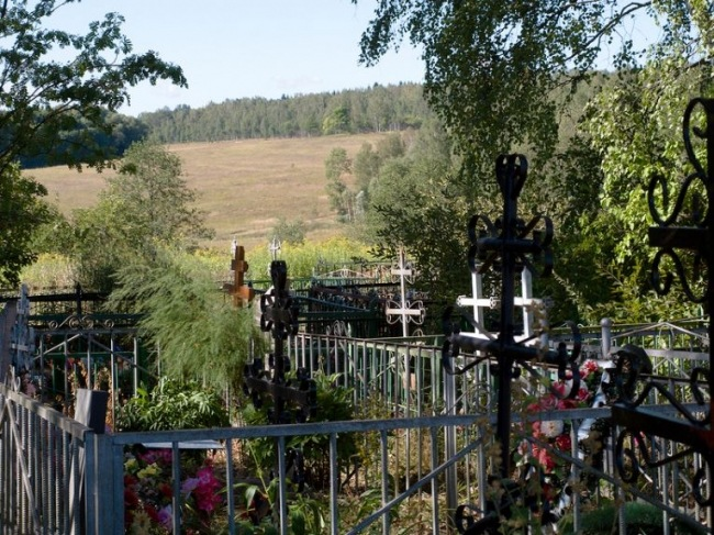 День был августовский, погожий, как раз между Медовым и Яблочным Спасом. Приехав погостить к родне в деревню, первым делом решил навестить кладбище с могилами почивших предков. Сопровождала меня пожилая тётя, жившая невдалеке. Само кладбище находилось в живописном месте на краю холма, в сени посаженных берёз и елей, рядом с одичавшим бывшим колхозным садом. Заросли стелющейся по траве ежевики с сочными чёрными ягодами то и дело попадались по краям тропинки, лёгкий ветерок шелестел в кронах деревьев и это всё никак не вязалось с фотографиями покойников на железных крашеных крестах. ”А помнишь П. ?” - спросила тётя. ”В армии его сильно били - вот и сошёл с ума, а спустя несколько лет родителей своих зарезал, самого же его сожительница задушила по пьянке, а тело в копанку с камнем на шее бросила, да одежда по весне всплыла - так и тело нашли” - добавила тётя. Я смотрел на три креста , где были фото П. и его родителей. Тяжёлый ком невольно подступил к горлу. ”А вон В., ещё помню я в школу