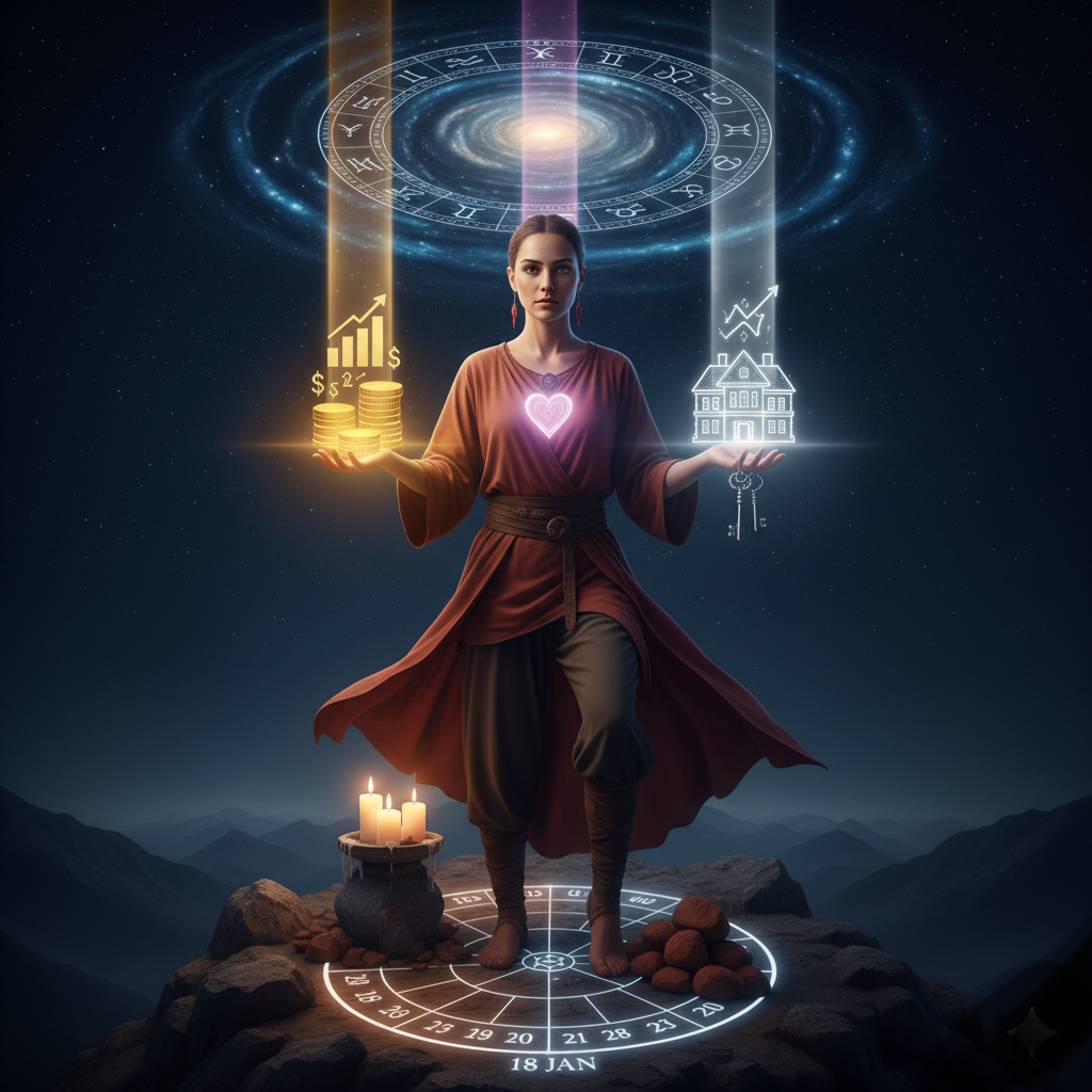 ) Мы находимся внутри уникального энергетического коридора. Пока мир живет по инерции, ты входишь в фазу управления событиями. Этот документ — твой путеводитель по взлому матрицы и закреплению успеха во всех сферах: от личных финансов до сакрального союза. I. АСТРОЛОГИЧЕСКИЙ ЛАНДШАФТ: ВРЕМЯ ТИТАНОВ Энергия этих дней пропитана силой Козерога. Это время, когда «воздушные замки» либо рушатся, либо обретают каменный фундамент. Прогноз по стихиям: Земля (Козерог, Телец, Дева): Вы — главные бенефициары. Вселенная выдает вам карт-бланш на строительство империи. Ваши слова становятся законом. Огонь (Овен, Лев, Стрелец): Время трансформации хаотичного пламени в направленный лазерный луч. Ваши амбиции получают финансовое подкрепление. Воздух (Водолей, Близнецы, Весы): Период «информационного пробоя». Вы получаете ключи от дверей, которые раньше были заперты на цифровой замок. Вода (Рыбы, Рак, Скорпион): Точка эмоциональной перезагрузки. Ваша интуиция становится безошибочным навигатором в