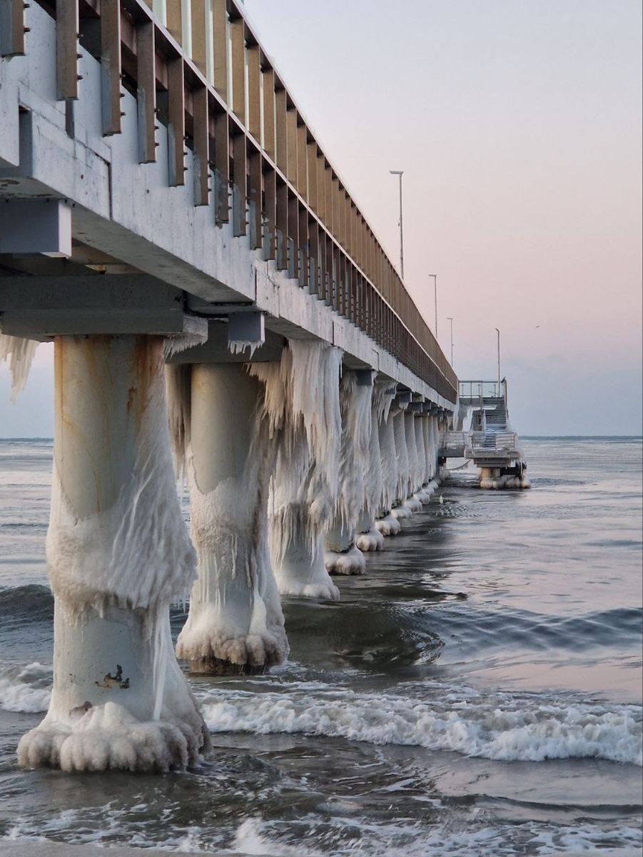 Море мёрзнет вместе с нами. Местами верхний слой уже подмёрз, стал густым, плотным, со льдом. Внутри этого плотного верхнего слоя волна и от того перекаты и красивые отсветы то белым, то холодным стальным. Береговая линия и всё вблизи моря во льду. Вот ведь какое царство Снежной королевы случилось у нас в этом году. В прошлом в это время уже подснежниками любовались, а тут вон чего 🥶 #зиманаБалтике #продолжаемзамерзать