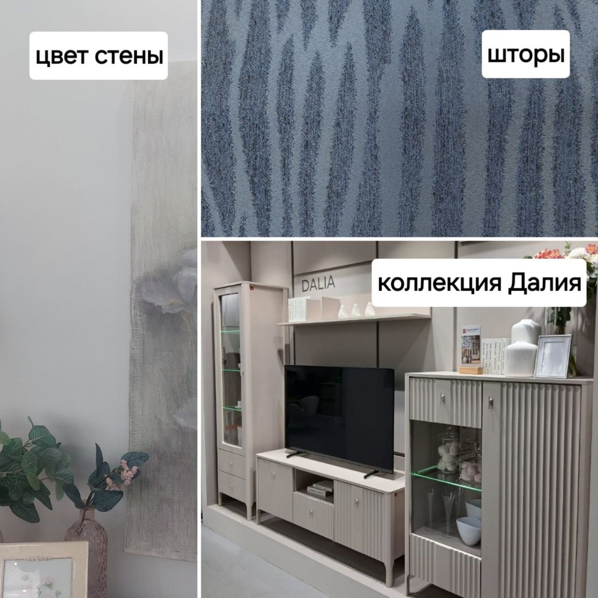 : 1. Мебель для гостиной из коллекции Далия. 2. Стена "Облачный танцор". 3. Шторы - глубокий синий. Вмеру яркий сложный цвет. Фактура волнами перекликается с закруглениями форм мебели. Как я ни старалась снимать, цвет и всю красоту передать не удалось... Поверьте на слово )))