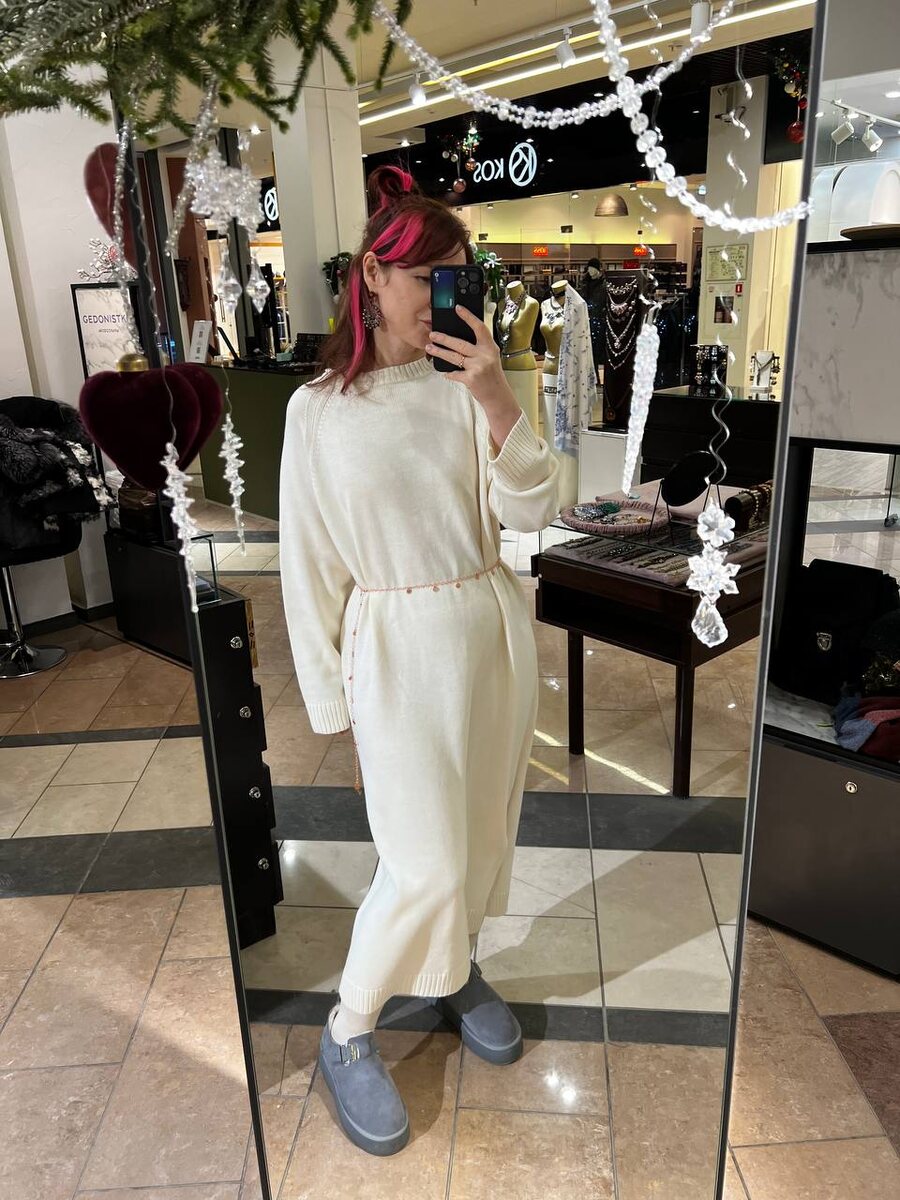 Выпустили их в четырех цветах: топленое молоко, изумруд, бордо и шоколад. В каждом цвете платья доступы в двух вариации горловины. Для тех, кто не любит закрывать шею, мы разработали ворот лодочкой, срезав пройму в районе ключицы. Мне кажется эта часть женского тела отвечает за женственность. Сексуальной можно быть не оголяясь. Но поскольку за окнами зима, то вполне справедливо поставить на первый план тепло и комфорт. И если ты мерзляка, платье с высоким горлом создано для тебя. Трикотаж плотный, не вытягивается, держит форму и красиво струится по фигуре. Пряжа Италия Состав: 70% шерсть, 30% полиакрил. Стираем в машинке на деликатном режиме. Стоимость 17900₽.