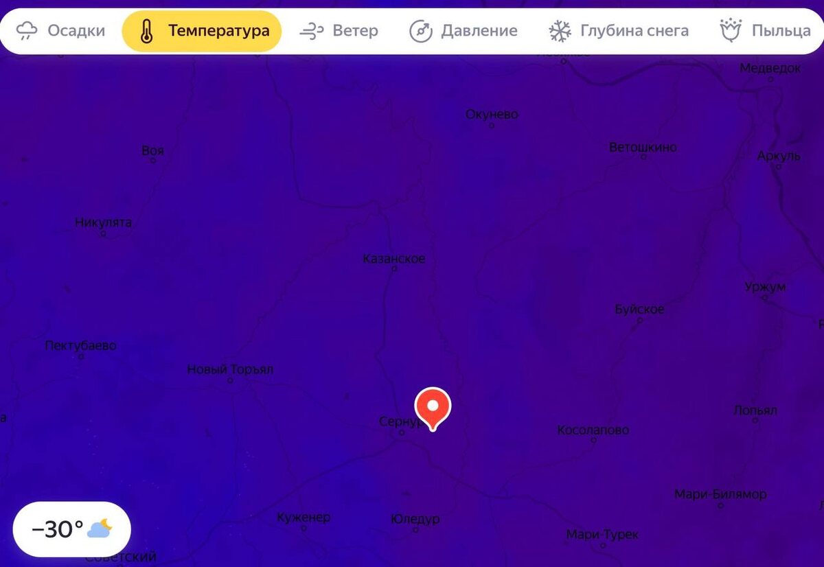 По данным сервиса «Яндекс.Погода», утром 23 января значительные морозы наблюдаются на востоке, юго-востоке и северо-востоке Марий Эл