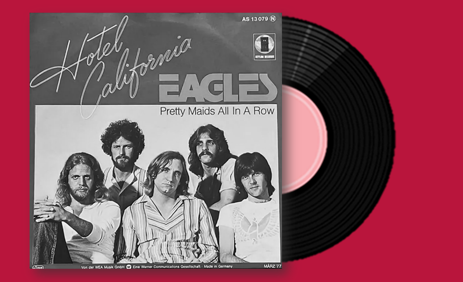 Первый тур, десятая группа. Здравствуйте! Продолжаем наш марафон-конкурс прилипашек. Для кого-то это жутко назойливые песни, для других - просто любимые, которые долго крутятся в голове. Каждый сам решает, за какие будет голосовать. Когда послушаем всё, что предложили читатели, посмотрим результаты и выберем 15 песен с большим количеством голосов за три дня. Между ними проведём второй тур/полуфинал. Затем в финал выйдут 5 самых назойливых песен, одна из них и станет победительницей нашего проекта. На сегодняшний день нам известны результаты по семи группам песен: Ориентиром мы пока берём те песни, которые набрали более 40 голосов: Пока никто не смог побить рекорд "Вороны", но это пока... Конкурс продолжается. Песня "Отель Калифорния". Когда в моей юности она звучала по радио, то в душе отзывалась каждая струна. Песня просто завораживала. Песню Hotel California исполняет американская рок-группа Eagles (Орлы), она вошла в одноимённый альбом 1976 года и стала их самой известной композ
