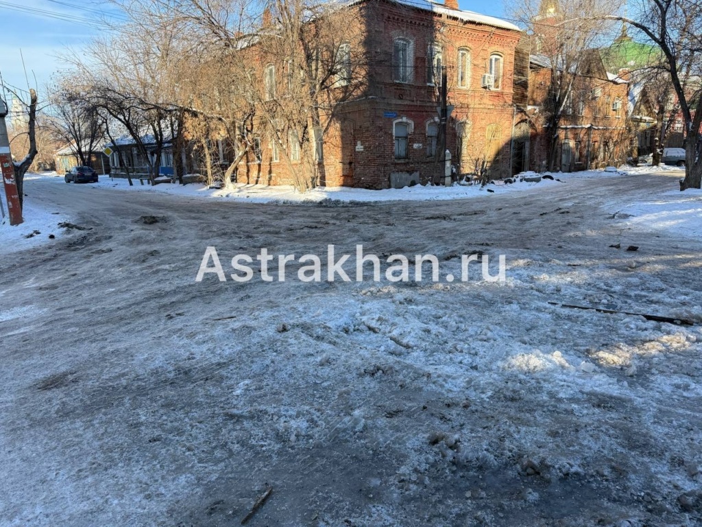 Этот перекресток не значился в сводках громких коммунальных аварий, но выглядит как последствия серьезной ЧС. Лед, вода и невозможность проехать – именно такую картину застал корреспондент Astrakhan.ru в центре Астрахани. 20 января во второй половине дня наш журналист случайно оказался на перекрестке улиц Зои Космодемьянской и Мусы Джалиля и застал там, мягко говоря, «интересную» картину. Со стороны дома № 1 по улице Епишина на проезжую часть текла неопознанная жидкость, внешне напоминающая обычную воду. По всей видимости, течь продолжается уже не первый день. В результате перекресток дорог фактически превратился в непроходимый айсберг: проезжая часть покрыта плотной высокой наледью, под которой скрывается вода, а снежно-ледяная каша добавляет ужаса ситуации. Как видно на фото, дорога покрыта толстым слоем льда с наплывами и замерзшими потоками, местами выступают доски и мусор, частично вмерзшие в наледь. Колеи от автомобилей заполнились водой, которая тут же схватилась морозом. Маневр