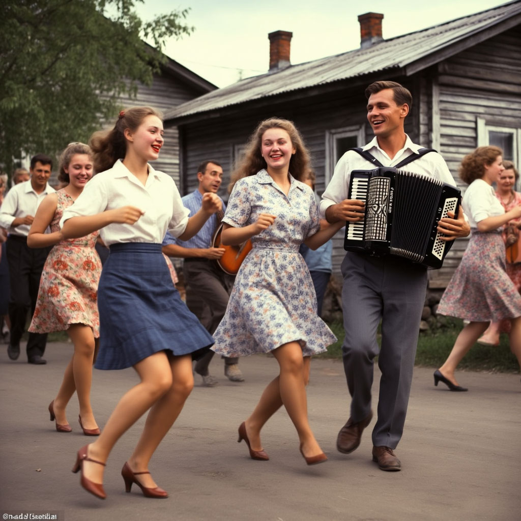 Вокруг смеялись, хлопали в ладоши, кто‑то подтягивался в круг, кто‑то перешёптывался, поглядывая на неё. Но Зинка уже не замечала никого — только блеск кофты, только звон гармошки, только ощущение, что он смотрит. И от этого танца, от этого взгляда, от самого воздуха, напоённого музыкой и смехом, на душе становилось легко-легко, будто и не было ни утренних споров с матерью, ни далёкой Растряхаевки, ни трёх долгих вёрст до неё.