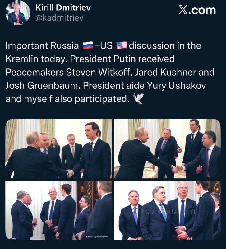 ‘President Putin received Peacemakers Steven Witkoff, Jared Kushner and Josh Gruenbaum’ — Putin’s Special Envoy Dmitriev