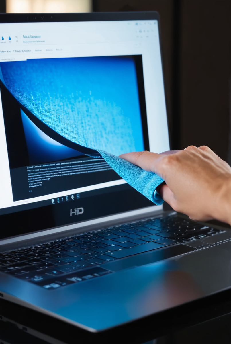 Этап 2: Влажная обработка. Золотое правило: не распылять на экран спрей для очистки напрямую, чтобы жидкость не попала внутрь! Распылите немного средства на безворсовую ткань. Плавными, не круговыми движениями (сверху вниз) обработайте всю поверхность. Так вы эффективно уберёте отпечатки пальцев и застарелые жирные пятна.