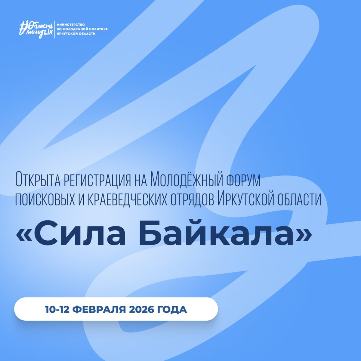 »! «Сила Байкала» – это три дня интенсивной программы с топовыми спикерами, полезными мастер-классами. На этом форуме вас ждет неповторимая атмосфера, встреча с единомышленниками, обмен опытом и новые знакомства. 📆 10–12 февраля 2026 года; 📌 г. Усолье‑Сибирское. 🖥 Зарегистрироваться можно по ссылке до 30 января! Проект реализуется при поддержке «Росмолодёжь.Гранты» и Иркутской областной молодежной общественной организации поисково-краеведческих отрядов «Дань памяти» ▫️ Подписывайтесь на Область Молодых в Max | Подписывайтесь на наши социальные сети