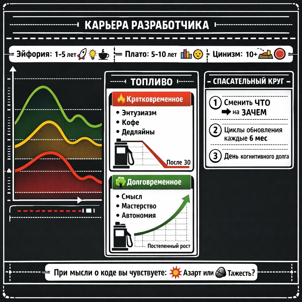 Вы замечали, что самые талантливые разработчики часто «исчезают» к 35? Они не уходят в менеджмент, не открывают стартапы — они просто перестают кодить.