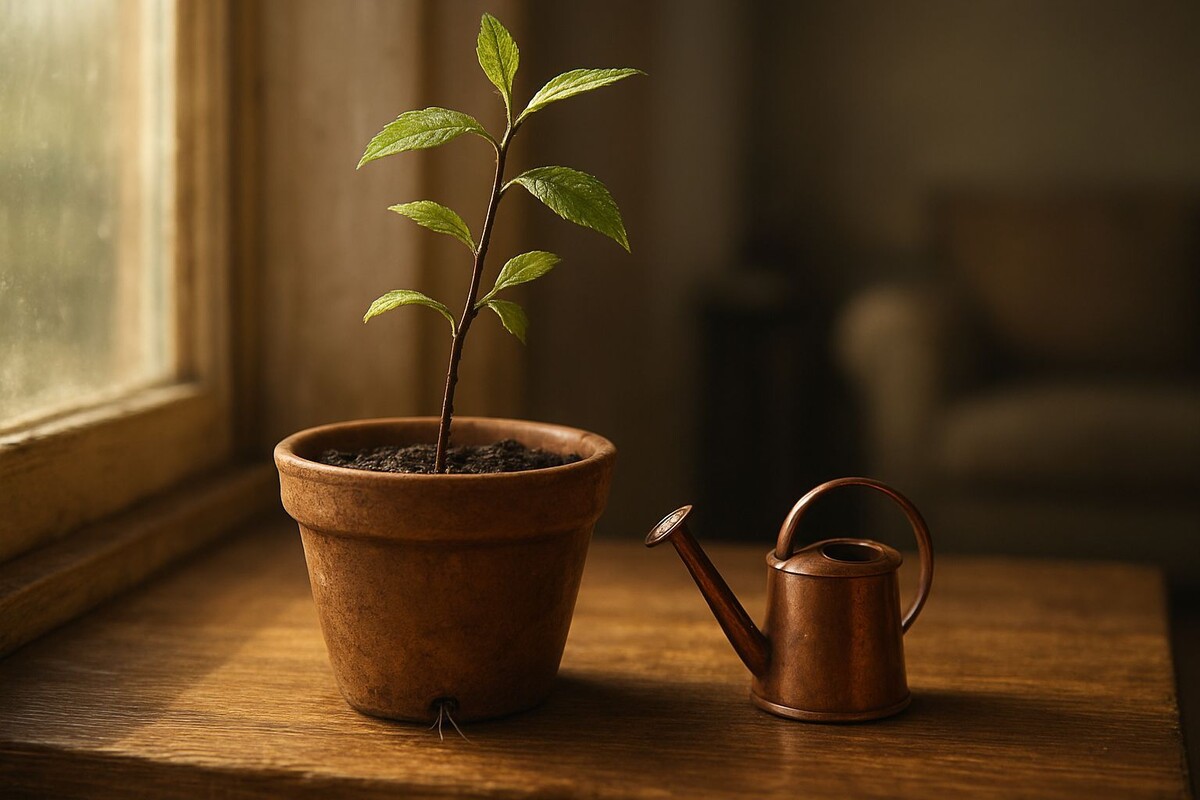 В тот же вечер она достала с антресолей глиняный горшок, оставшийся от какого-то давно загубленного фикуса. Насыпала на дно керамзита, купленного когда-то «на всякий случай». Привезла с прогулки у пруда немного лёгкой земли. Действовала медленно, сосредоточенно, с непривычным чувством важности процесса. Когда она аккуратно присыпала землёй нежные корешки, ладони её дрожали.