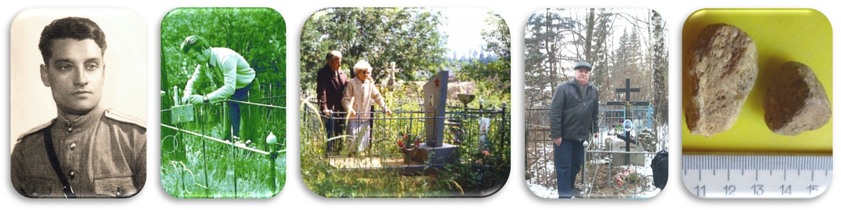 На память остались только немногочисленные фотоснимки с Ковезинского кладбища, да парочка памятных камушков (на фото справа) с окрестностей могилы...