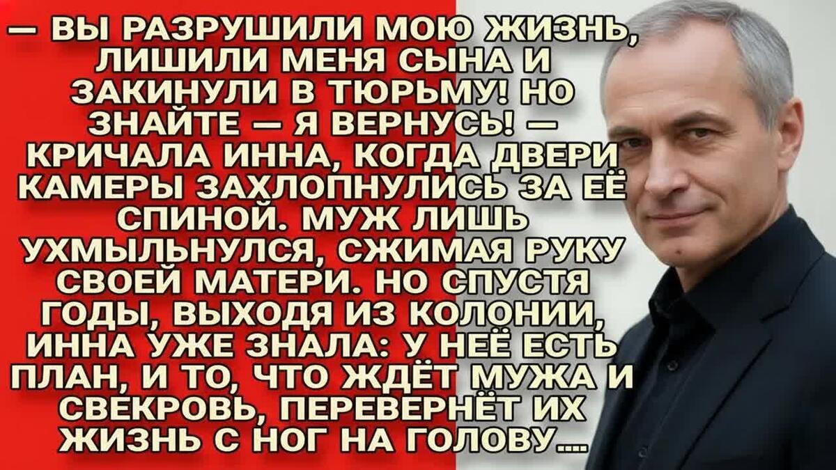 — Вы разрушили мою жизнь! Вы лишили меня сына! — кричала тогда Инна, пока конвоиры грубо толкали ее к выходу. — Но знайте, я вернусь! Я обязательно вернусь!