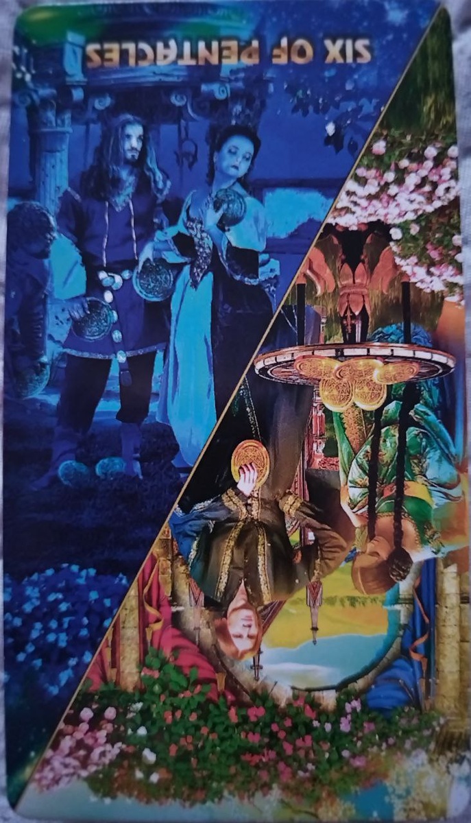 Осознайте свои мотивы. Подумайте, почему вы делаете то, что делаете. Убедитесь, что ваши действия основаны на честности и справедливости, а не на личной выгоде. Будьте внимательны к окружающим. Обратите внимание на потребности и чувства окружающих вас людей. Постарайтесь поддержать тех, кто нуждается в помощи. Не пытайтесь манипулировать ситуацией или людьми ради собственной выгоды. Честность и открытость всегда приносят лучшие результаты. Будьте благодарны за всё хорошее, что есть в вашей жизни. Помните, что богатство и успех приходят благодаря поддержке и сотрудничеству с другими. В общем, совет на сегодня заключается в том, чтобы внимательно относиться к своим действиям и мотивам, проявлять заботу о других и избегать эгоизма и манипуляции. Для кого-то совет может звучать кардинально иначе. Если 6 пентаклей про то, чтобы давать, и обычно вы может так и делаете, то перевернутая карта показывает, как женщина все забирает, гребет себе. Так может сегодня вам стоит перестать давать, отдав