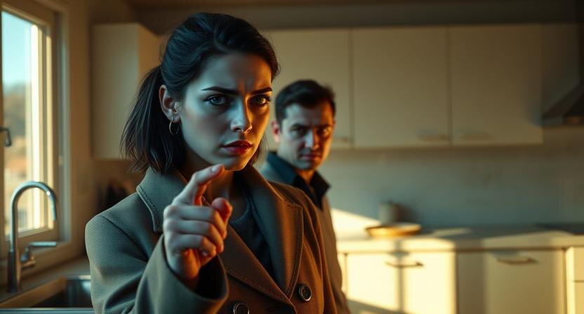 Юля осталась стоять посреди кухни, чувствуя, как дрожат руки. Владимир сел, уставился в стол.