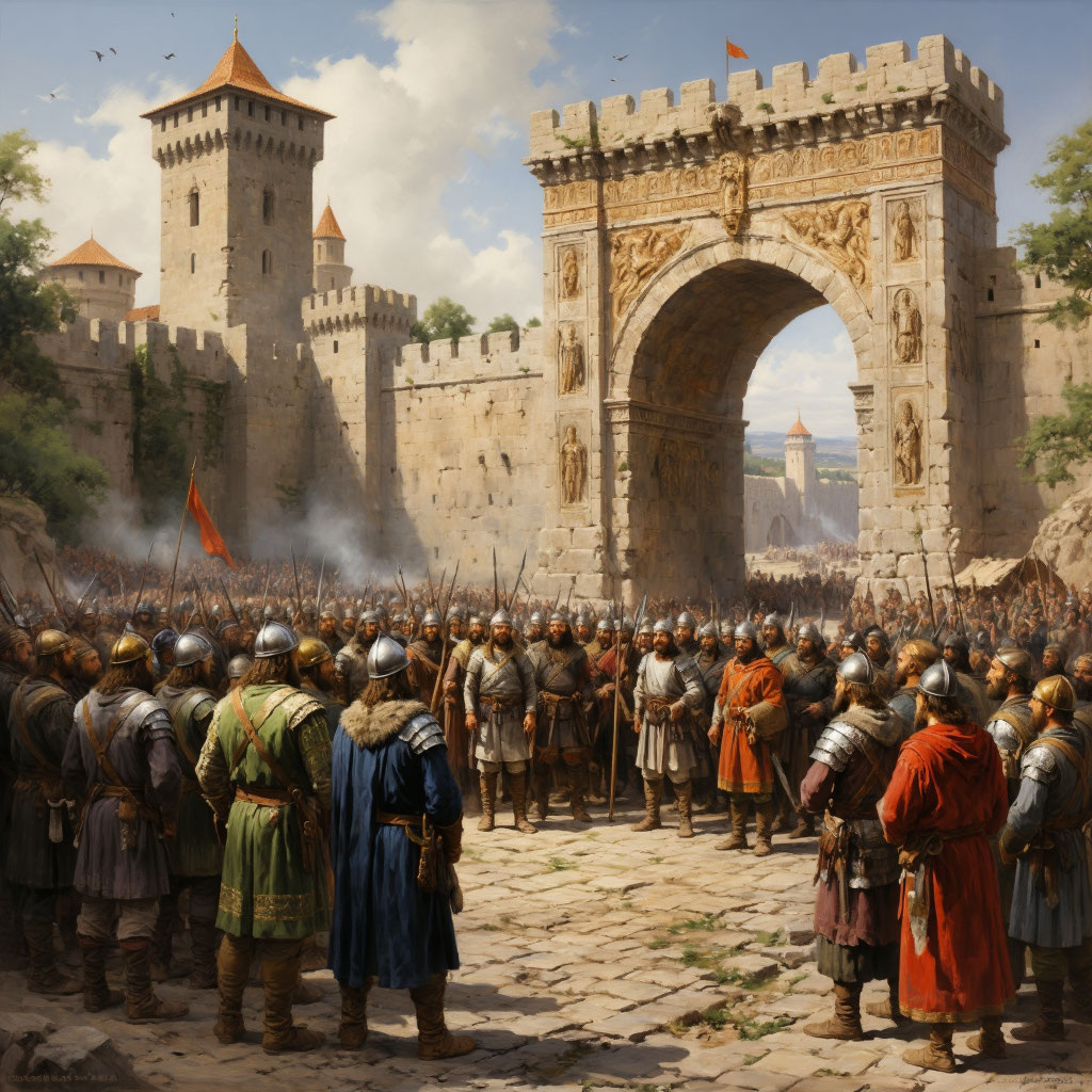 Поход князя Олега на Константинополь в907 году — одно из ключевых событийранней истории Древнерусскогогосударства. Он не толькопродемонстрировал военную мощь Руси, нои привёл к заключению первого официальнозафиксированного договора с Византией,закрепившего выгодные условия для русскихкупцов и укрепившего международныйпрестиж Киева.