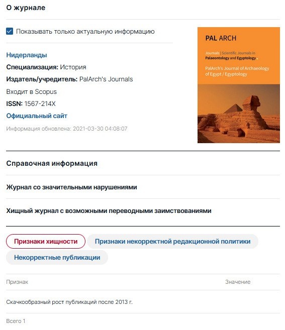 Нидерланды Специализация: История Издатель/учредитель: PalArch's Journals Входит в Scopus https://www.dissernet.org/magazine/palarch_s_journal_of_archaeology_of_egypt