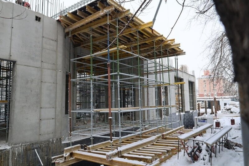 В Барнауле продолжается строительство нового здания ЦУМа. Строители уже начали заливать бетон для стен первого этажа, и теперь можно увидеть, каким будет новое здание. На стройплощадке работает башенный кран, а над забором видны металлические конструкции будущих стен и колонн. В 2025 году на месте старого здания 1964 года постройки были проведены подготовительные работы и заложен фундамент. Согласно проекту, здесь будет построен современный деловой центр площадью 2,6 тысячи квадратных метров. В комплексе будет двухэтажный стилобат с торговыми помещениями и заведениями общественного питания, а также две башни высотой 12 и 18 этажей. В башнях разместятся офисы и отель с четырьмя звёздами. Особенностью проекта станут внутренний дворик и терраса, где смогут разместиться летние кафе. TG канал | Наш сайт | Группа ВК