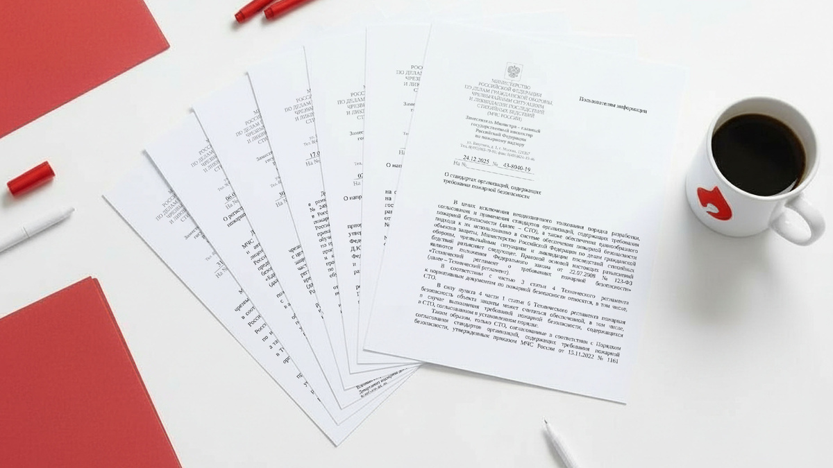 Информационное письмо МЧС России от 24 декабря 2025 г. № 43-8040-19 уточняет правовой статус стандартов организаций. Документ подчеркивает, что СТО становится нормативным документом по пожарной безопасности исключительно после согласования с МЧС России. При этом запрещается использовать СТО для снижения уровня пожарной безопасности ниже минимальных нормативных требований. Любые изменения технических характеристик в СТО требуют проведения новых испытаний.
