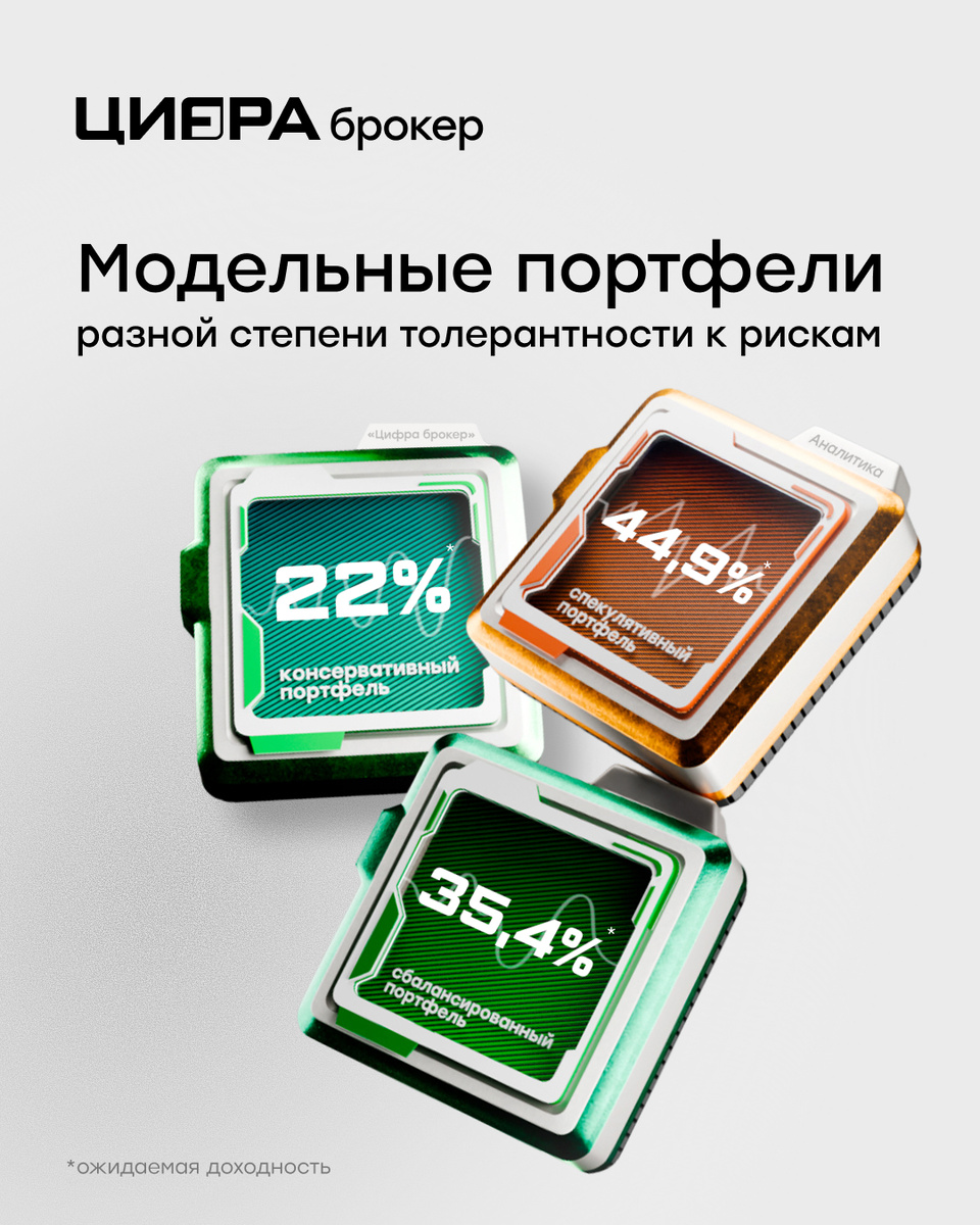 💼 По итогам 2025 года все три типа модельных портфелей показали положительные результаты: • сбалансированный 22,4% (по сравнению с повышением индекса МосБиржи полной доходности на 2,9% с декабря по январь 2025 года); • консервативный 17,4%; • спекулятивный 4,9%. Позитивная динамика достигнута благодаря селективному подбору эмитентов и инструментам фиксированного дохода, несмотря на сдерживающий эффект от высоких процентных ставок в экономике и внешнюю неопределённость. В 2026 году консервативный портфель может сохранить результаты из‑за высокого уровня процентных ставок, а спекулятивный — вырасти при ожидаемом снижении ключевой ставки. Подробнее в обзоре аналитиков «Цифра брокер». ⚡️ Не является индивидуальной инвестиционной рекомендацией. Упомянутые финансовые инструменты или операции могут не соответствовать вашему инвестиционному профилю и инвестиционным целям (ожиданиям).
