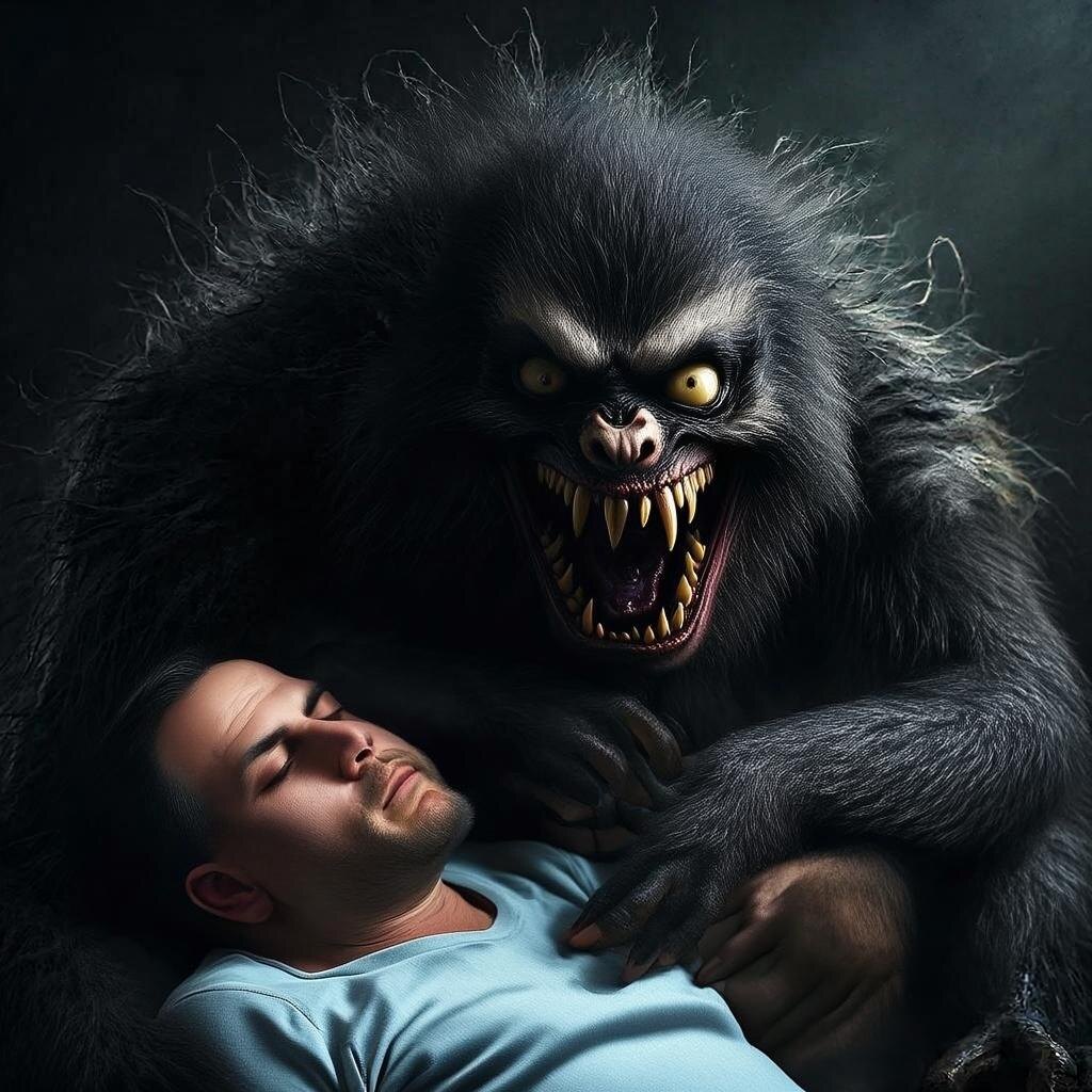Но спустя неделю, ночью сквозь дрёму, я почувствовал, что кто-то медленно заполз мне на ноги, сел на них и замер. Я всё чувствовал, но ничего не мог сделать. Существо парализовало меня, двигаться я не мог и закричать тоже. Оно давило мне на ноги так, словно на них поставили бетонный блок. Прошло, наверное, минут десять, и давление исчезло, как исчезло и существо – так же внезапно, как и появилось.