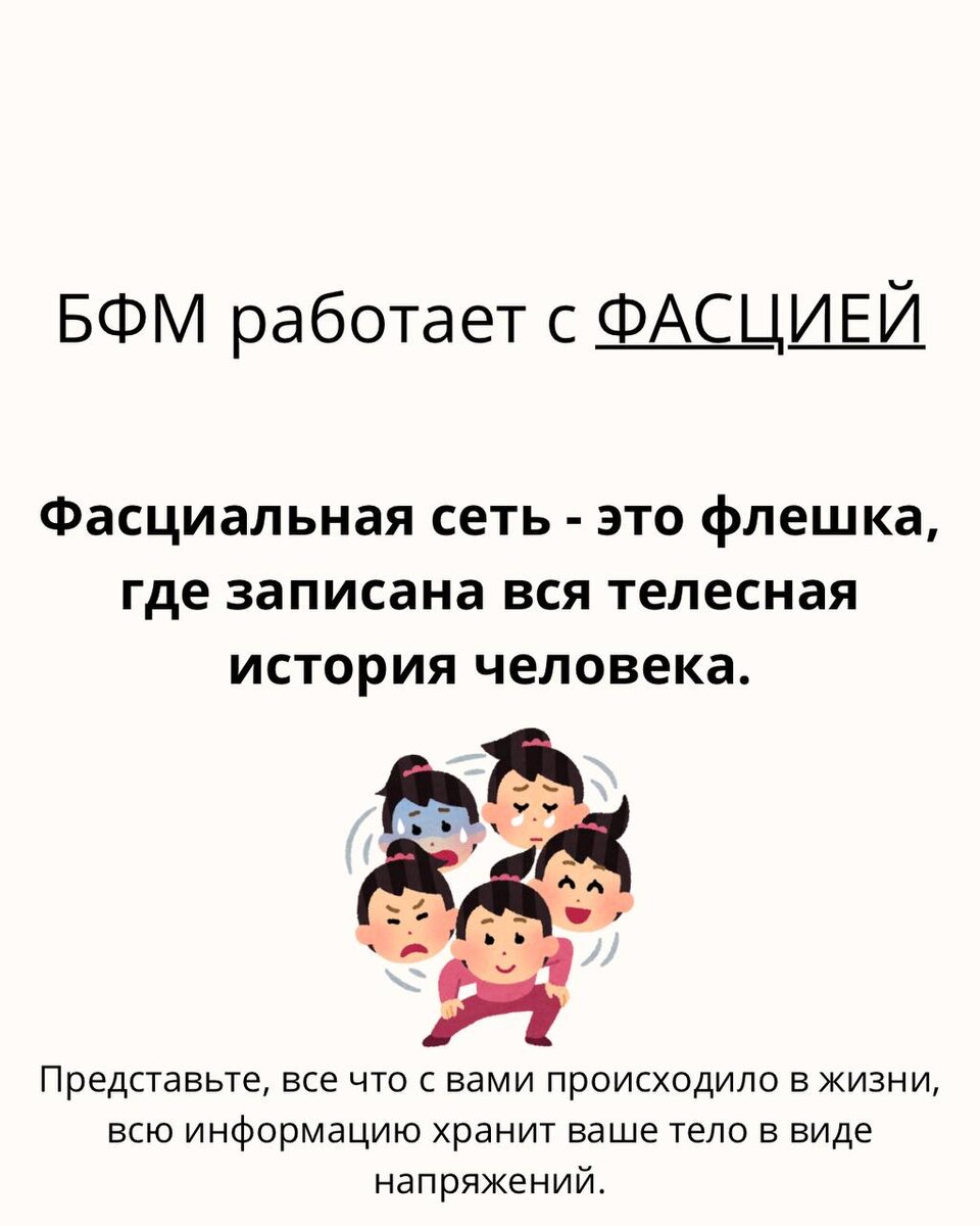 Метод БФМ для меня — это творчество, это чувствовать микро и макродвижения в теле, и каждый раз ваше тело что-то «рассказывает», а я «наблюдаю» за этим процессом и помогаю ему, когда это необходимо. Это как поиск «того самого» момента в фотографии. Волшебного, который потом хочется пересматривать, где есть жизнь и глубина». ©️Анастасия Кучерявая Продолжение карточек, подготовленных Анастасией Кучерявой для своего канала. #методбфм #минск #обучениекотороеменяетжизнь