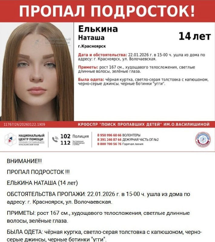 В один день вместе с пропавшим сыном красноярского бизнесмена, за которого требуют выкуп, в этом же районе исчезла 14-летняя девочка