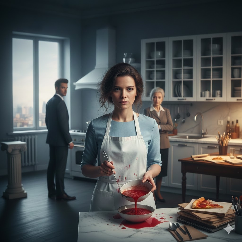 Она подошла к раковине и одним резким движением вылила борщ в канализацию. Рубиновые капли брызнули на её белоснежный фартук. Она не стала их вытирать.