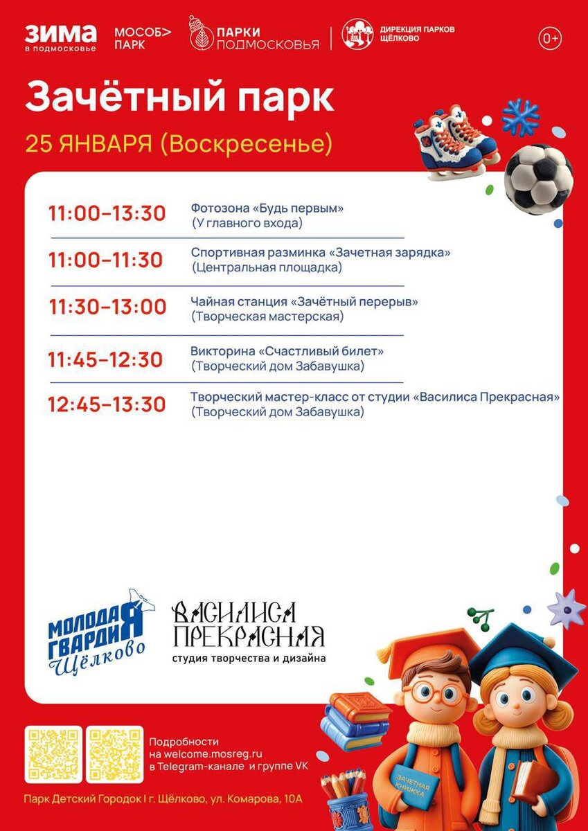 » 🤓 Присоединяйтесь к мероприятию «Зачётный парк», которое пройдёт уже в это воскресенье. Вас ждут: 🌼 фотозона; 🌼 спортивная разминка; 🌼 чайная станция; 🌼 викторина; 🌼 творческий мастер-класс. 🗓 25 января в 11:00. #зимавподмосковье #культуращёлково