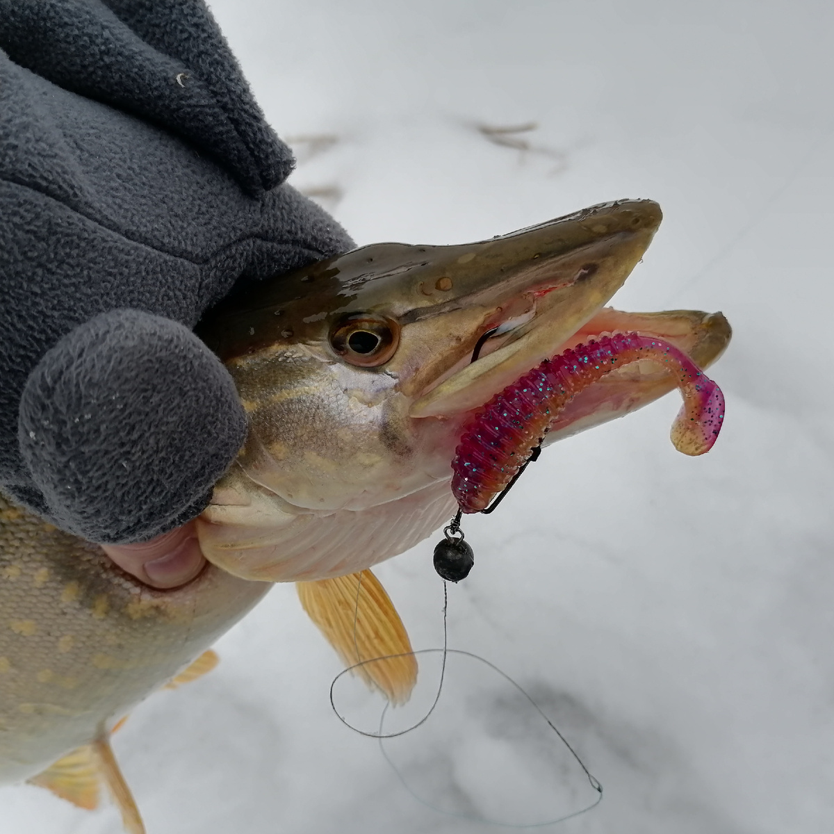 Наиболее простым и понятным объекты охоты зимнего спиннингиста является, конечно, щука. На некоторых водоёмах с особо тёплой (для зимы, конечно) водой она неплохо реагирует и на воблеры, но чаще всего щуку зимой ловят на джиг. Размер приманки «под щуку» - от двух до четырёх дюймов. Причём довольно часто щука даже «нормального» размера явно предпочитает самые мелкие приманки. А вот цвет приманки для зубастой не так важен. Но всегда лучше иметь несколько цветовых предложений. «Под окуня» берём двухдюймовые приманки. И вот в случае с полосатым хищником цвет определённо имеет значение. Наилучшие результаты почти всегда показывают «фиолет», «моторка», «зелень». Но есть дни, когда эти фавориты проигрывают «оранжу» или «белому перламутру». Так что окуню в случае его капризного клёва надо предложить всё, что есть в коробке – авось, какой-нибудь цвет и выстрелит. Немаловажный фактор – огрузка джиговой приманки. Зимой, как правило, ставим самые лёгкие из всех возможных. Т.е. если «ступенька» пол