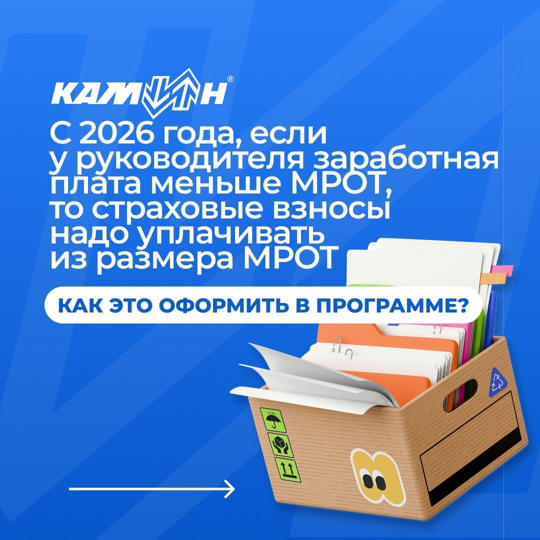 Даже если зарплата руководителя меньше МРОТ или её нет вовсе, страховые взносы всё равно считаем с МРОТ. С 1 января 2026 года в статье 421 НК РФ появился новый абзац. Суть простая: если выплаты руководителя меньше федерального МРОТ на начало года — база по взносам автоматически приравнивается к МРОТ. ⚡️ Причём речь идёт не о любом сотруднике, а именно о физлице, которое указано в ЕГРЮЛ как единоличный исполнительный орган. Что больше не имеет значения: ➖ есть трудовой договор или нет ➖ директор — единственный учредитель или наёмный ➖ ведёт компания деятельность или «спит» ➖ начисляется зарплата или ноль ➖ простой, отпуск, отсутствие выплат ⚠️ Пока физлицо числится в ЕГРЮЛ как руководитель — взносы платим. ❗️ Если директор был в реестре не полный месяц — базу считаем пропорционально календарным дням. ❗️ Если один человек руководит несколькими компаниями — каждая платит взносы отдельно. ❗️ Если в одной компании несколько ЕИО — платим по каждому. А как это отразить в программе? Мы со
