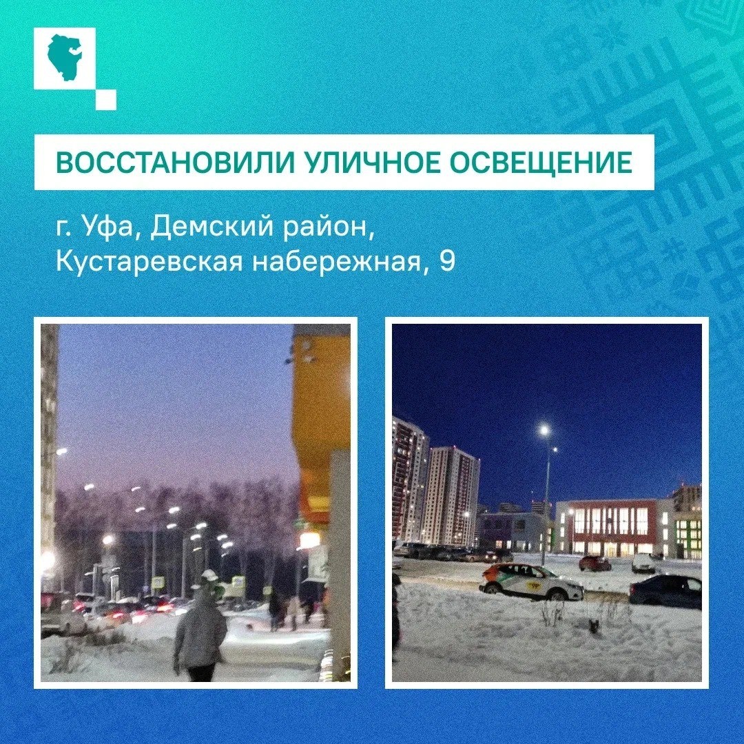 😀😃😄😁 В микрорайоне «Яркий» города Уфы восстановили уличное освещение. На неработающие фонари в соцсетях пожаловалась жительница дома №9 по Кустаревской набережной. Центр управления республикой зафиксировал сообщение. Инцидент отработала администрация Демского района.