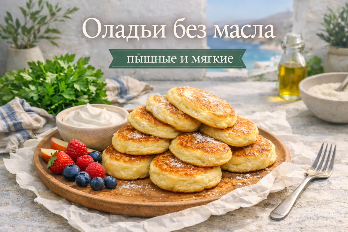 — или внутри сырые. Сегодня разберём рабочую формулу оладий, которые можно готовить почти без масла, они остаются мягкими и пышными, не превращаются в «резину» и отлично подходят для завтрака или полдника. Запомните принцип: Кисломолочная база + разрыхление + правильная консистенция + средний огонь Без этих четырёх пунктов оладьи стабильными не будут. 💡 Важно: все ингредиенты комнатной температуры. Тесто должно быть: ❌ Жидкое тесто = плоские оладьи.