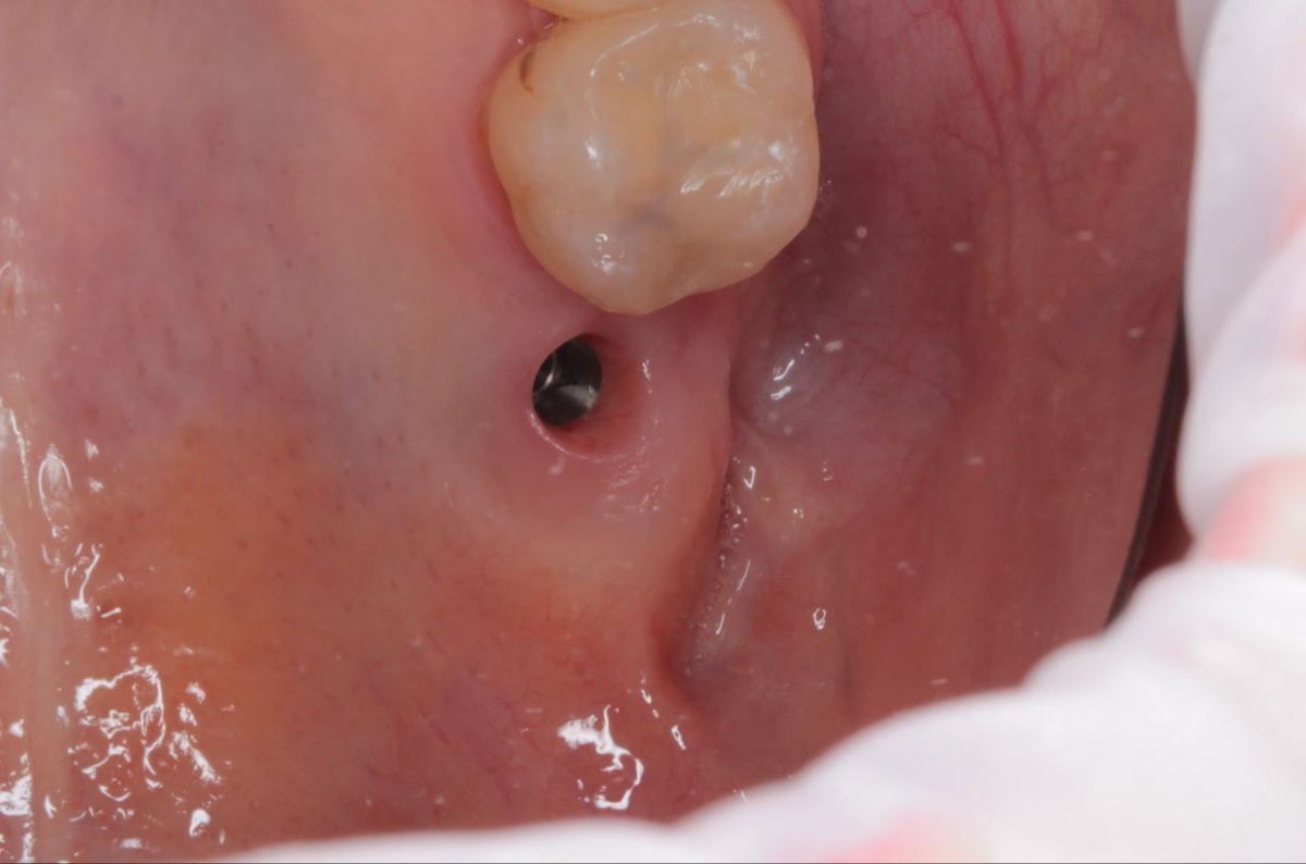 На фото представлен этап после установки импланта через 4 месяца. На этом этапе стоматологического лечения проводим осмотр десны и определяем приживаемость импланта зуба. Имплант заглублен в костную ткань на 2 мм, тем самым даём возможность формирования идеальной десны вокруг будущей коронки. #стоматологодинцово #имплантациязубов #миродент #стоматологиямиродент #одисити@mirodento