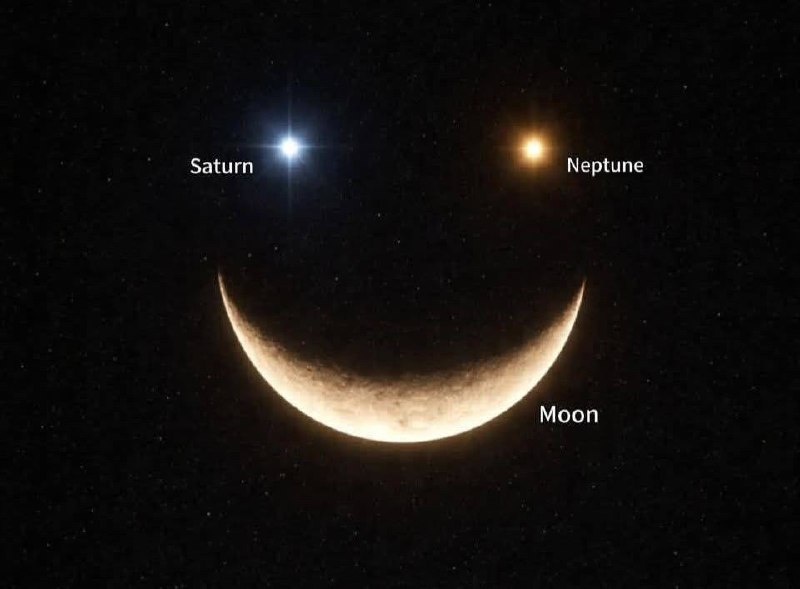 » Сегодня в созвездии Рыб произойдёт интересное астрономическое событие: Луна, Сатурн и Нептун выстроятся в ряд и будут напоминать смайлик. Наблюдать за этим явлением можно будет по всей территории России после захода Солнца. Луну и Сатурн можно будет увидеть невооружённым глазом, а для того, чтобы разглядеть Нептун, потребуется бинокль или телефон с функцией увеличения. Такое расположение Луны и планет называется конъюнкцией. Хотя объекты не сближаются физически, с нашей точки зрения они выглядят расположенными рядом. 🔭 Не забудьте поставить напоминание и поднимите глаза к небу! 👍 © Star Walk TG канал | Наш сайт | Группа ВК