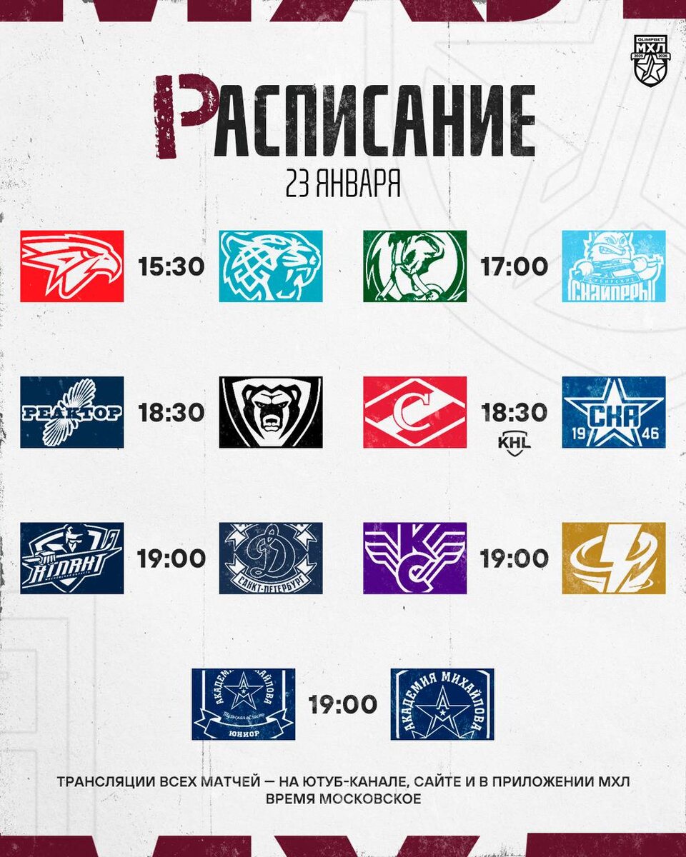 «Мамонты Югры» примут на домашней площадке «Сибирских Снайперов», «Спартак» и «СКА-1946» встретятся в Москве, «Атлант» ждет петербургское «Динамо»