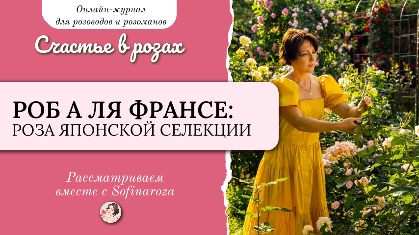 Знаменитый сорт Роб а ля Франсе, или как у нас называют Французское платье, — это творение прекрасной и таинственной японки Дзюнко Кавамото (Junko Kawamoto), которая создаёт сорта невероятных, нежнейших оттенков. Вокруг её коллекций ходят легенды, а заполучить розы этого оригинатора мечтает каждый розовод. Дзюнко Кавамото известна своим совершенно особым подходом к селекции, и её имя давно стало легендой в профессиональной среде. Многие её розы долгое время существовали только на японском рынке и были доступны лишь коллекционерам. Она работает не как промышленный селекционер, а как художник: медленно, вдумчиво, выпуская сорта ограниченными сериями. Каждый новый сорт — это результат долгой, тонкой и почти ювелирной работы. Например, сорт Блю Мун стоун (Голубой лунный камень) выведен специально для немецкого питомника, его практически нигде не купить. Роб а ля Франсе является частью кутюрной серии. И это не просто красивая формулировка: как в высокой моде, в кутюрной серии роз Кавамото
