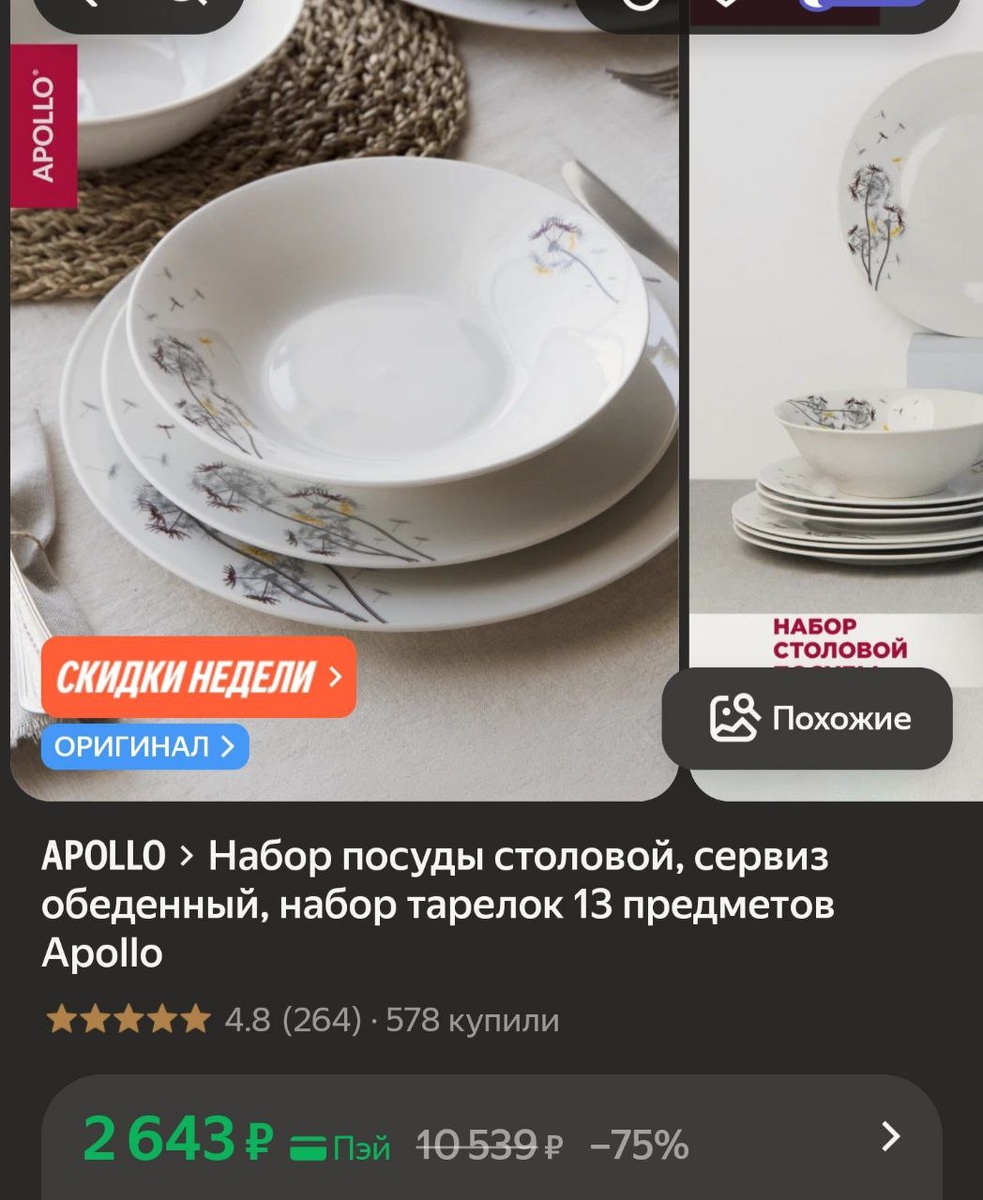 ) ℹ️13 предметов (на 4 чел) + салатник. Качество - обалденное, отзывы - исключительные - забирайте! ➡️Получить карту Пэй 🎁Участвовать в розыгрыше ➡️Подписаться на Дискаон