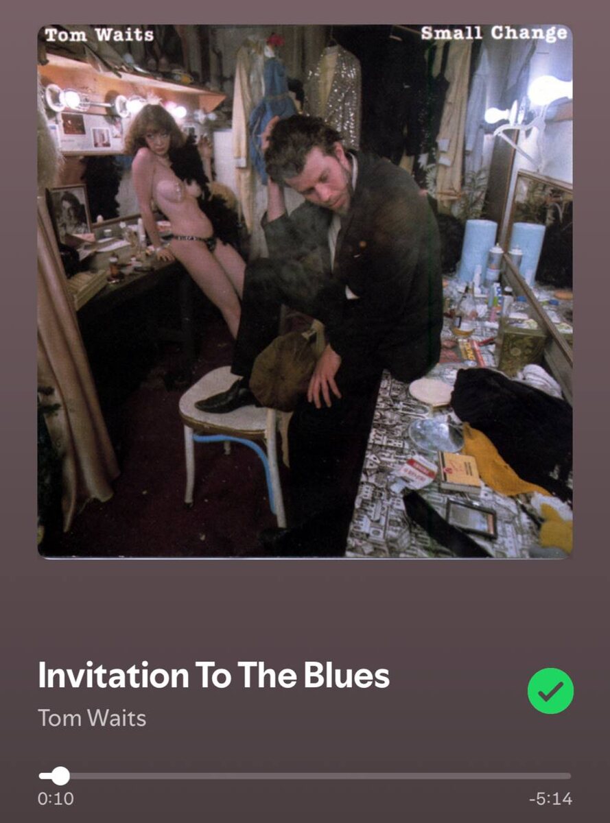 мэшап, но есть все же вещи, которые абсолютно меня восхищают в музыке. К которым я возвращаюсь не буднично в составе плейлистов, а каждый раз на основе какого-то неотложного и неутолимого чувства, что вот пришло время, нужно послушать именно ее одну, отдельно, остановив все дела. Уже лет десять у меня так с Invitation to the Blues Тома Уэйтса. Восемь утра, в случайную пятницу едешь в Сапсане, читаешь книгу, встречаешь упоминание Кэгни и Богарта, и вот оно – всё, о чем думаешь две следующие страницы – надо слушать срочно. Включаешь и пять минут ловишь с восхищением каждый переход. Вот думаю надо начать собирать такие непотопляемые для меня вещи, каждый раз колоссальные в своей красоте даже через десять лет. Будем считать это моим вкладом в тренд 2016, тогда я слушала ее ровно с таким же восторгом. She's a moving violation from her conk down to her shoes Well, it's just an invitation to the blues And you feel just like Cagney, she looks like Rita Hayworth At the counter of the Schwab's