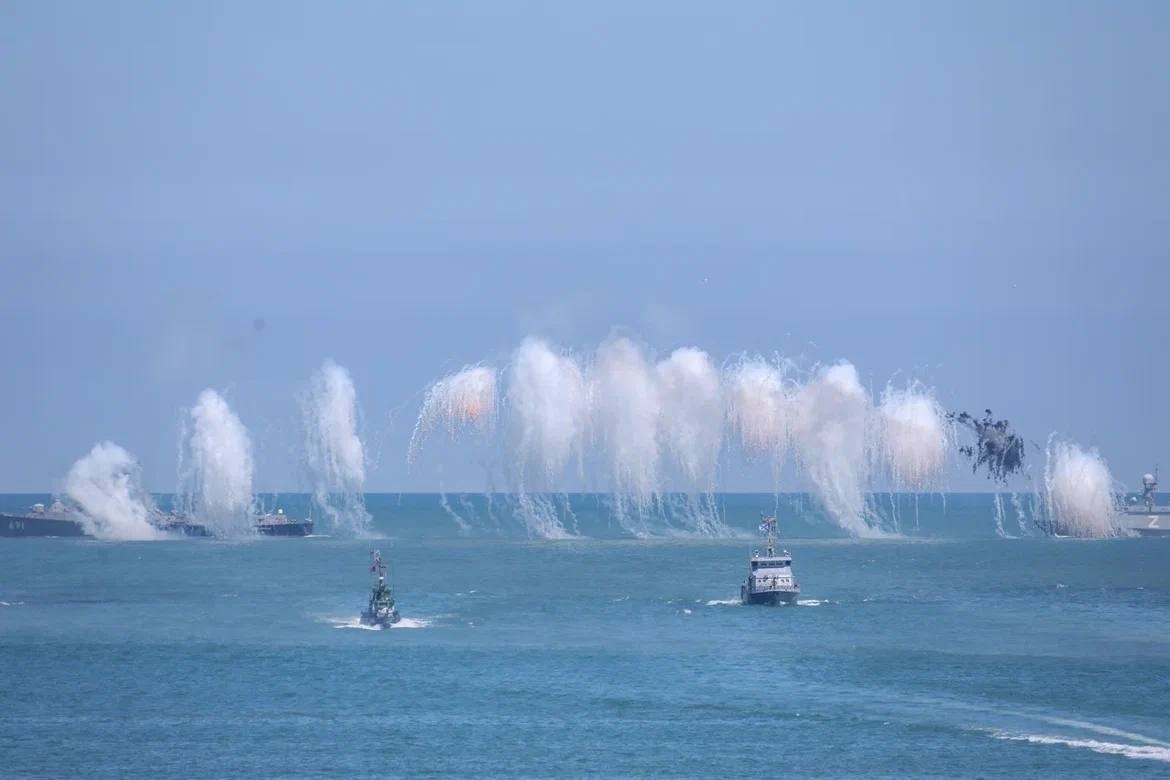 Манёвры сил Каспийской флотилии в рамках подготовки к Дню ВМФ.