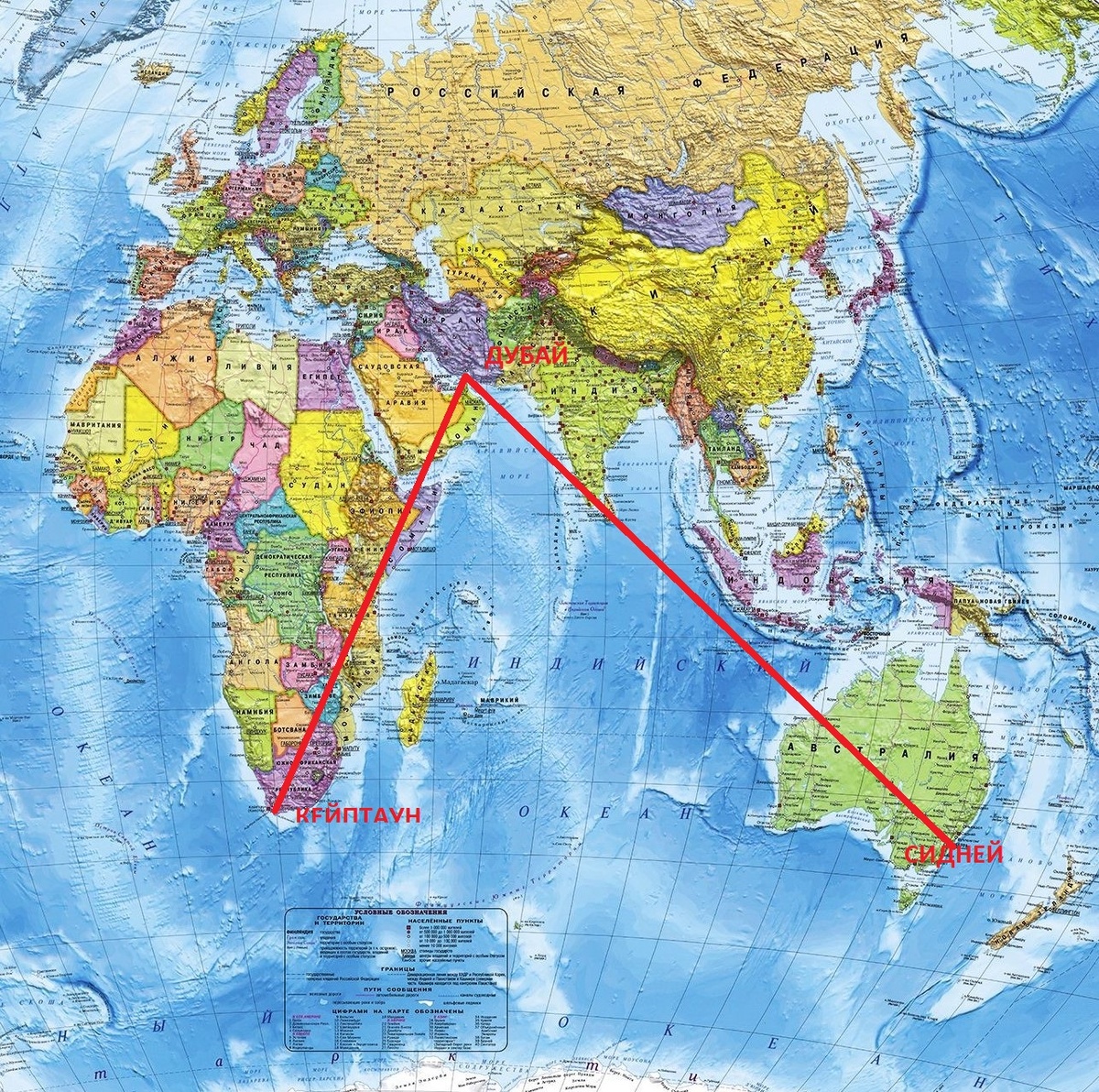 Вы когда-нибудь летали из Кейптауна, что в самой южной точке Африки в Сидней, что на самом краю Австралии? Если нет, то не удивляйтесь, если вас "повезут" не напрямую, а сначала вы посетите Дубай, то есть всю Африку пролетите с юга на север, а потом снова полетите на юг, согласно расписанию.