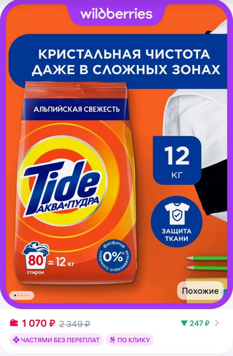 😀😀😀😀 12кг TIDE Стиральный порошок Автомат Альпийская свежесть 80 стир