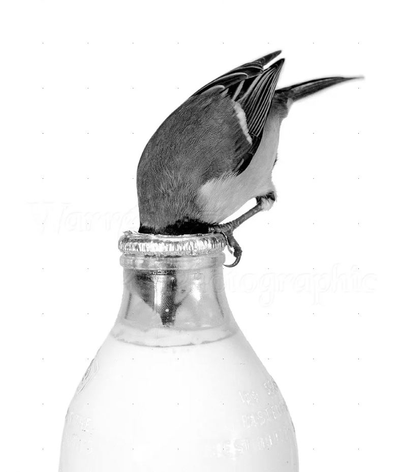 Делимся, рекомендуем... А вы знали, что синички, да и вообще все птицы, молоко не переваривают. Оказывается в их организме, в отличие от млекопитающих, к коим и мы с вами относимся, нет нужных для расщепления лактозы ферментов. Зато в слое сливок, который образуется на цельном негомогенизированном молоке, лактозы почти нет, так что пополнить свой запас жира можно где? Правильно, залетев в гости к людям. Точнее совершив налёт на людей. В европейских странах в конце XIX начале XX века молочные бутылки и бутылки со сливками начали закрывать крышками из вощёного картона. Крылатые разбойницы терпеливо отдирали картон слой за слоем, пока крышка не становилась достаточно тонкой, чтобы её можно было проткнуть острым клювом. Птицы сидели на горлышке бутылки держась крепко лапками и окунали туда свой клюв. В результате им удавалось выесть до двух сантиметров сливок. После Первой Мировой войны бутылки с молочными продуктами которые оставляли у порогов домов молочники начали закрывать алюминиевой