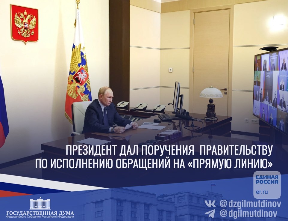 Предметом разговора стала «Прямая линия», на которую поступило свыше 3 млн обращений. И каждое обращение обрело форму прямого указания к действию для всех уровней власти. Президент по итогам анализа поступивших обращений дал поручения Правительству по их исполнению. Наша партия обеспечивает оперативное нормативное оформление президентских поручений в Госдуме, а также контроль за их исполнением в регионах. Главное: - совершенствование системы поддержки семей с детьми, основанное на мнении граждан. Владимир Владимирович заявил, что многодетные семьи, чей доход при переоформлении пособия незначительно превысит прожиточный минимум, не потеряют выплату. Размер допустимого превышения составит 1 894 руб. - Президентские поручения включаются в Народную программу. - для решения запроса граждан с 1 января был отменён мораторий на штрафы для застройщиков, которые не передают ключи от квартир в оговоренные сроки. - Запущены продажи льготных препаратов через «Почту России» и мобильные аптеки