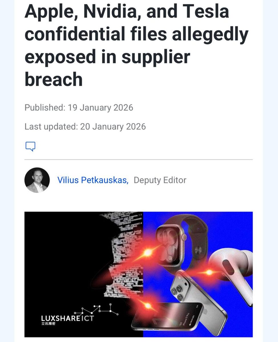 Взломщики утверждают, что угнали более 1 ТБ данных: 3D-модели, чертежи, инфу о комплектующих гаджетов и много другой информации. Все документы датируются с 2019 по 2025 года. Хакерская группировка требует выкуп или обещают слить все данные. Это грозит появлением поддельных некачественных устройств еще до релиза оригинала. Ждем новость, что за кибербезопасность Luxshare отвечал ИИ 😆 Echo Chamber - подписаться