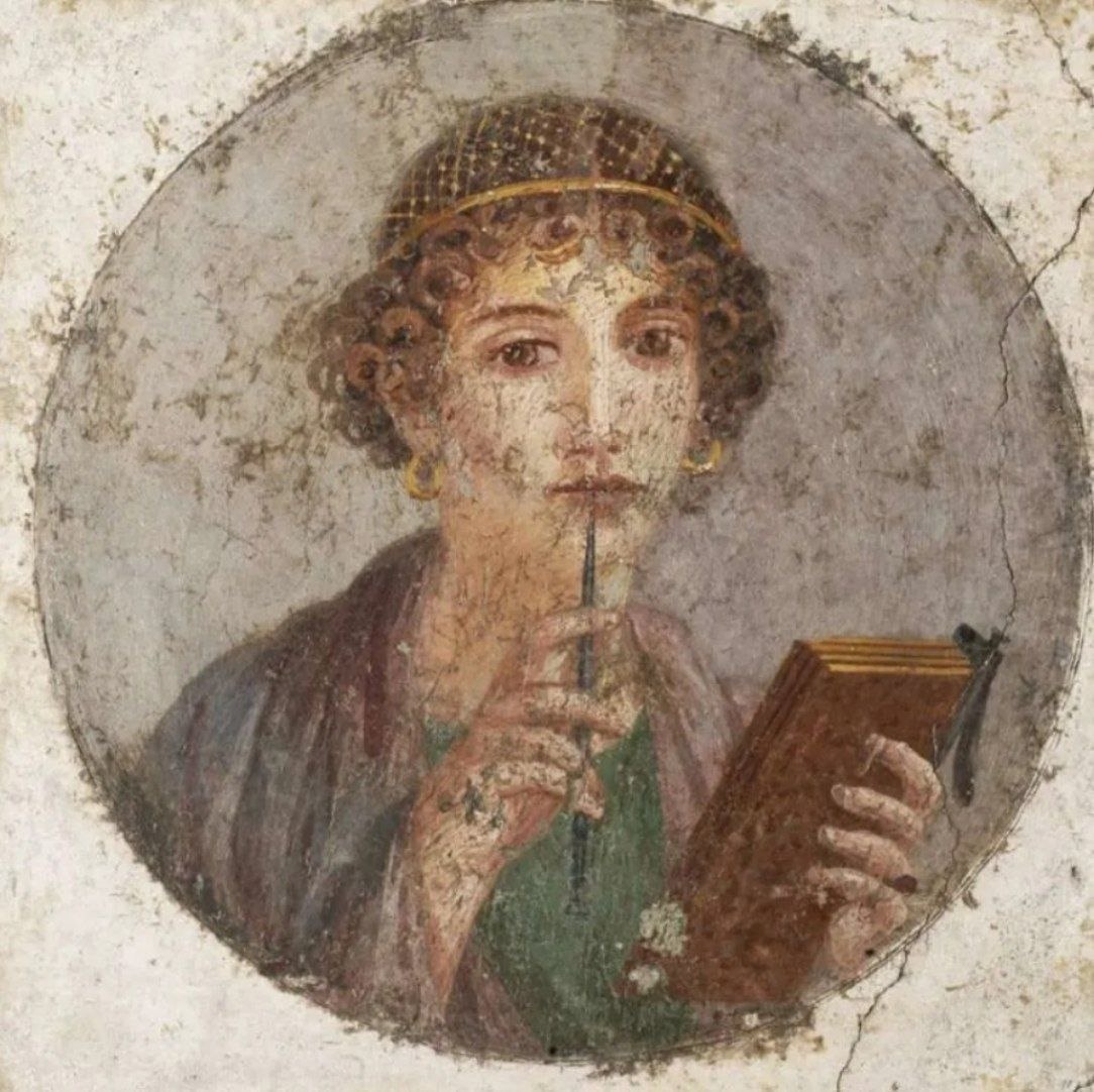 Портрет молодой девушки или Портрет поэтессы Сапфо? Шедевр неизвестного художника, I век, размер 37×38 см Вероятно, самая известная из помпейских фресок — это круглый медальон «Портрет молодой девушки», или «Портрет поэтессы». Он был обнаружен в июне 1760 года. Долгое время думали, что это знаменитая поэтесса Сафо (Сапфо), идеал красоты и гармонии античного мира. На самом деле это типичное изображение образованной молодой дамы, к тому же с высоким социальным статусом, на что указывают её золотые украшения. Подобные медальоны прославляли моральные и физические достоинства женщины, и потому не могут претендовать на буквальное портретное сходство. Терра инкогнита | Неизвестная земля