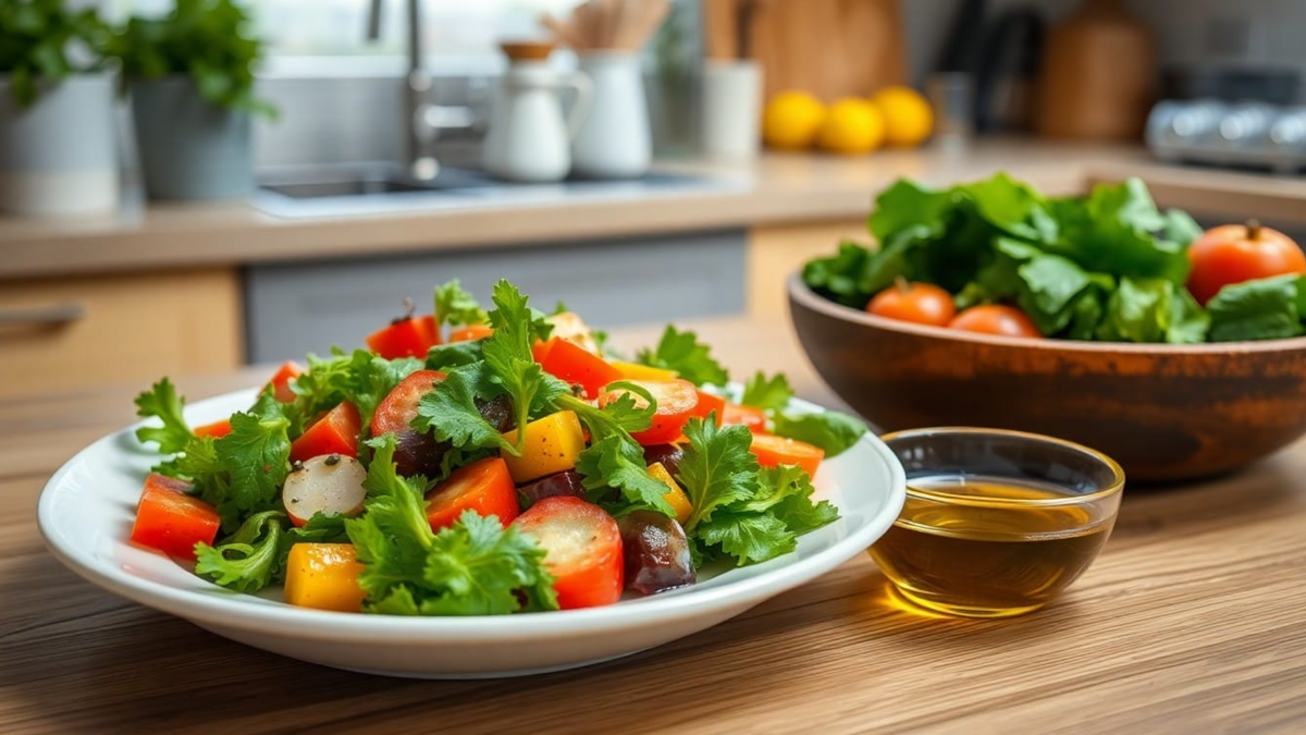 Салат из овощей без масла — красивый, но иногда бедный по усвоению: витамины A, E, K “раскрываются” лучше, когда рядом есть немного жира.