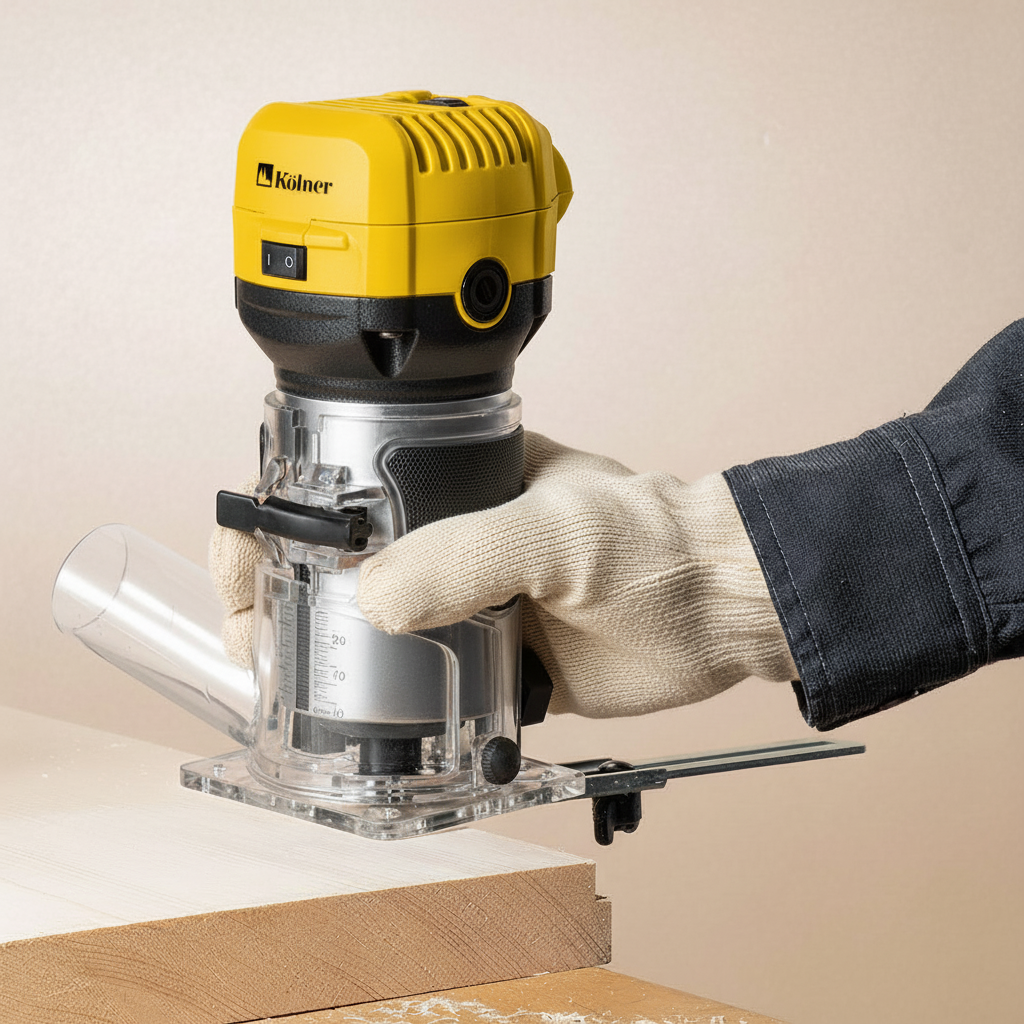 При фрезеровании иногда случается обратный удар (или отброс). Он возникает, когда режущие кромки фрезы слишком глубоко врезаются в поверхность. Обратный удар опасен и для заготовки, и для столяра, да и самому фрезеру ресурса не добавляет. Основных причин у него две. Первая — к обратному удару нужно быть готовым в самом начале работы, когда подшипник фрезы еще не коснулся поверхности детали или когда одна сторона параллельного упора «висит в воздухе». Возможное решение — прижать к торцу заготовки вровень с ним обрезок дерева, чтобы начать фрезерование именно с него. Тогда все дефекты останутся на этом обрезке, а не на детали. Другая причина — неуверенный или слабый хват рукояток инструмента, достаточно мощного для того, чтобы держать его покрепче. Но помните о том, что мотор фрезера и его инерция все равно сильнее рук человека, поэтому перед обработкой чего-то вызывающего опасения сначала лишний раз подумайте. Не стоит фрезеровать тонкие рейки между фрезой и параллельным упором, так ка