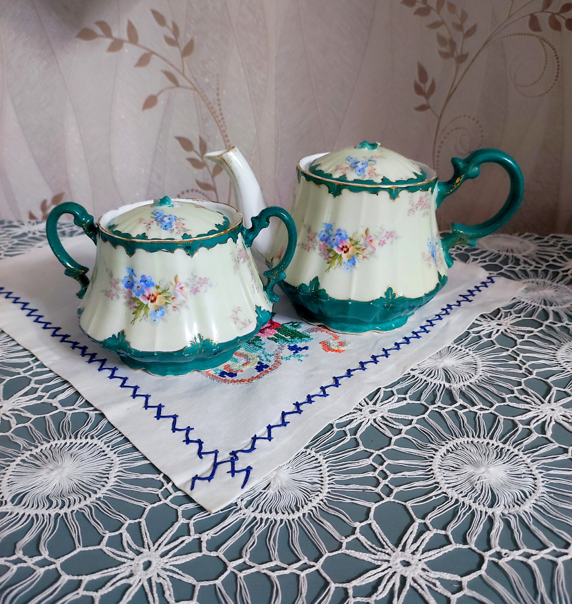 Сегодня я покажу вам ещё один подарок из большой посылки от подписчицы. Это замечательные и редкие предметы из сервиза И. С. Кузнецова, заварочный чайник и сахарница.