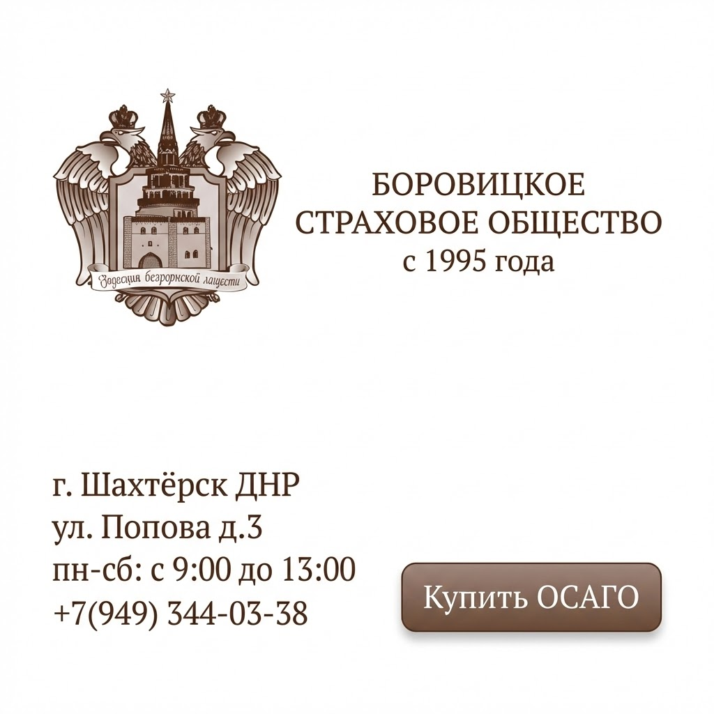 **Боровицкое страховое общество** - это одна из ведущих страховых компаний, успешно работающая на территории **Донецкой Народной Республики (ДНР)** с адаптированными тарифами и условиями для новых регионов Российской Федерации. Компания основана **13 сентября 1995 года** и имеет более чем **20-летний опыт** работы на страховом рынке.